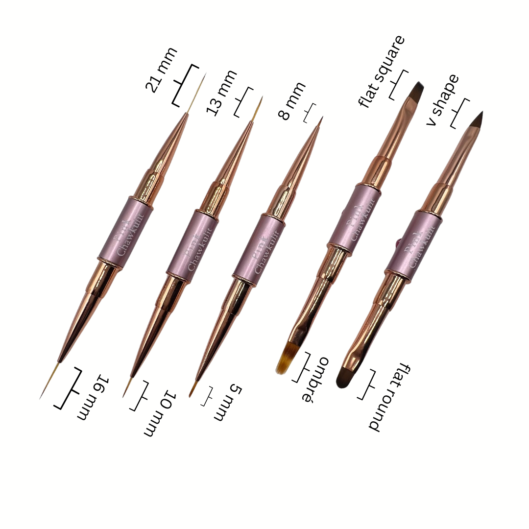 Our Nail Art Kit has everything you need to create your own designs at home. The kit includes our BEST SELLING Rose Gold Double-Sides nail art Brushes, our Double- Sided Dotting Tools, 2 Glass Nail Files, and 2 Painters Palette Nail Art Rings. Check out our Insta and FB for tutorials and inspiration!
